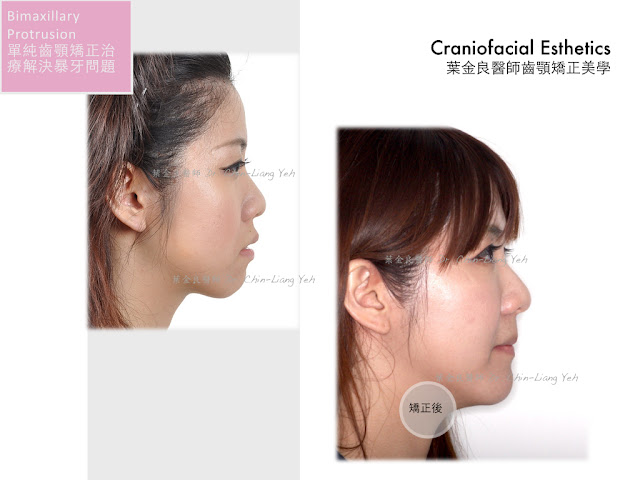 經過矯正治療後,可以發現外觀的重要改變與齒槽骨的長度變短。鼻唇角的變大使得鼻型極為自然與立體,下巴因為下顎門牙的後移而使下唇得到可以放鬆使得形態更為美力動人!