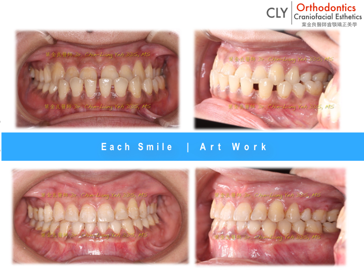 由於患者本身有許多的牙齒間隙,這些零星空間加起來,再加上全齒列的後移,可以避免拔牙!哇!太幸運了!正確的『診斷與治療計劃』,真的是矯正治療中最重要的一環!請欲咨詢我的矯正患者能了解,因為在完全巨細靡遺的診斷與模擬圖後才能避免矯正的錯誤與不完美。診斷與治療計劃討論,真的非常值得我們治療開始前,再三思考與了解,畢竟矯正是這輩子的事,慎選矯正計劃也再重要不過了!豈能輕易相信主觀的決定?!