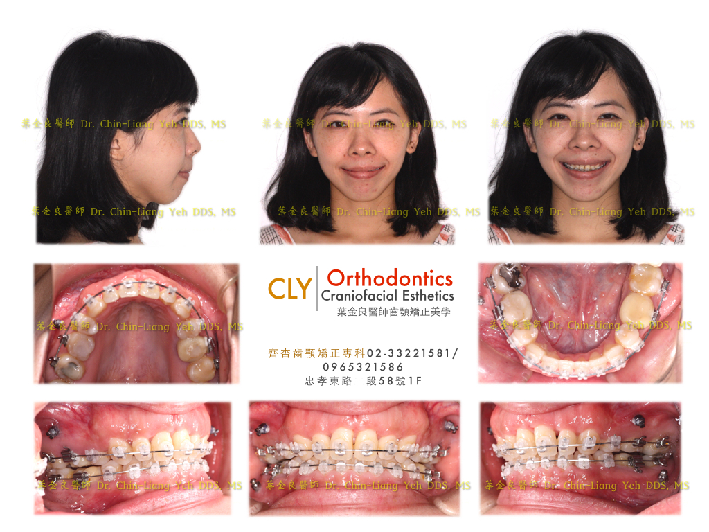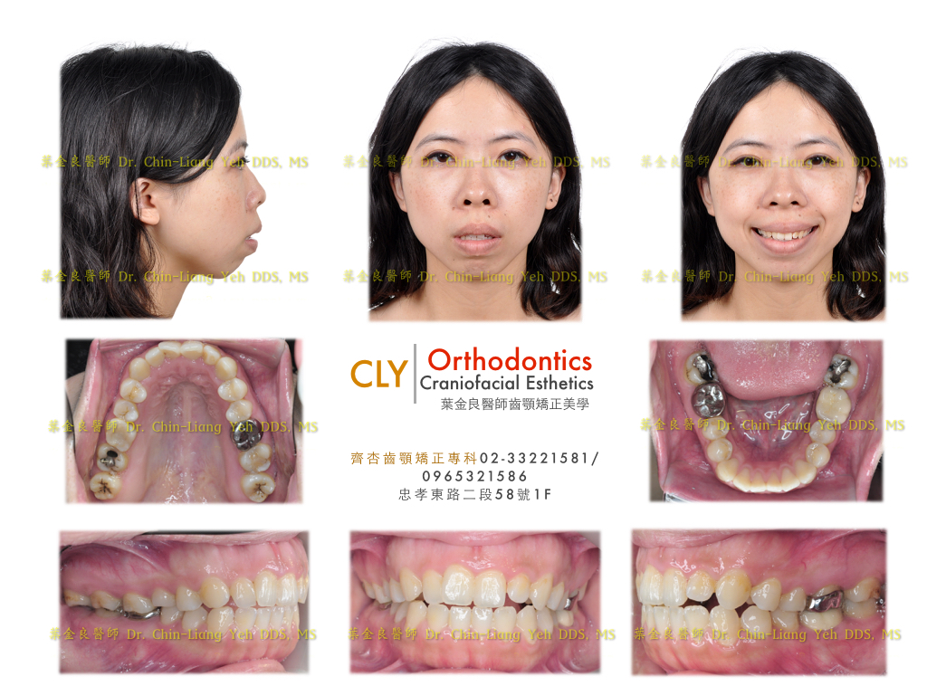 當病患選擇相信診斷與以非手術為前提的最佳治療計畫下,我們開始了辛苦又充滿挑戰的治療,矯正時間1年半後,置放四隻骨釘,拔除四顆小臼齒,目前拔牙空間已經關閉。就顏面上已經改善許多,然而我們並沒有認定已經結束。