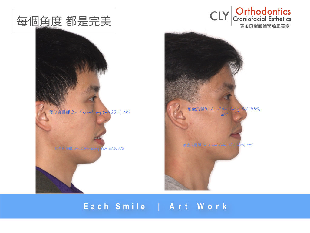 沒有過度的將上下唇向內移動,以避免過於凹陷。較為對稱的唇型 (Lip Symmetry) 可以讓人留下較為帥氣且親切的印象,所以矯正事實上是必須符合個性,與達到患者本身的期望的。矯正治療中,除了必須傳遞應有的美感外,拉近人與人之間的距離感也是必須考量的。